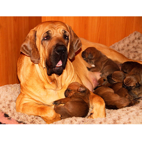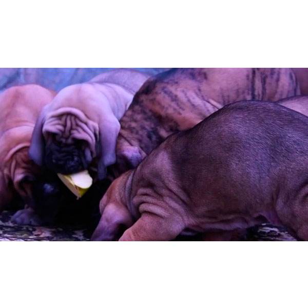 Кормление должно происходить 2-3 раза в день, этому мастифу необходимо большое содержание белка в рационе.