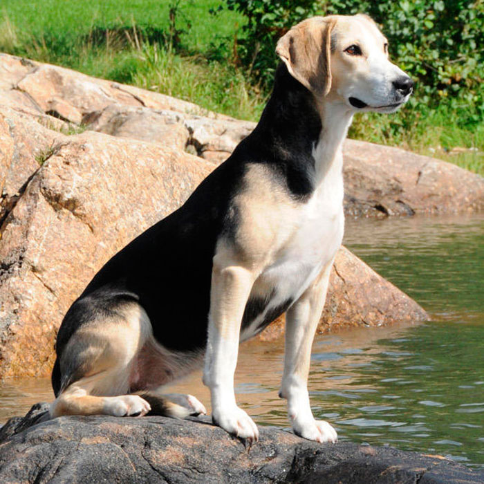 Дункер или норвежская гончая – охотничья порода, выведенная в XVIII для преследования зайца. Упорный охотник с развитым чутьем. Прекрасно справляется с погоней в любой местности и условиях. Известна только в скандинавских странах. Больше всего распространена на родине. Собаководческие организации Англии и Америки не признали этот вид.