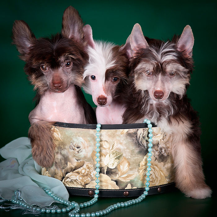 Точно так же непредсказуем и окрас потомства. А стандарт не бракует “китайцев” по цвету кожицы и шерстинок. Все это провоцирует у азартных собаководов страсть к “коллекционированию” всего многообразия экстерьеров хохлатых. Им хочется сразу содержать и голых, и пуховых, и блондинок, и “шоколадок”, и брюнеток, и пятнистых во всех вариациях. Это так заводит, что трудно остановиться…