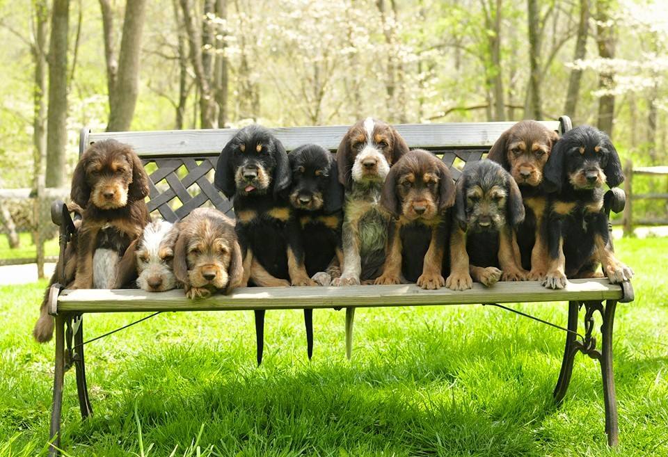 Независимо от окраса мамы-собаки, детёныши рождаются тёмными. Главным отличием щенков этой породы являются длинные свисающие ушки и перепонки на лапках.