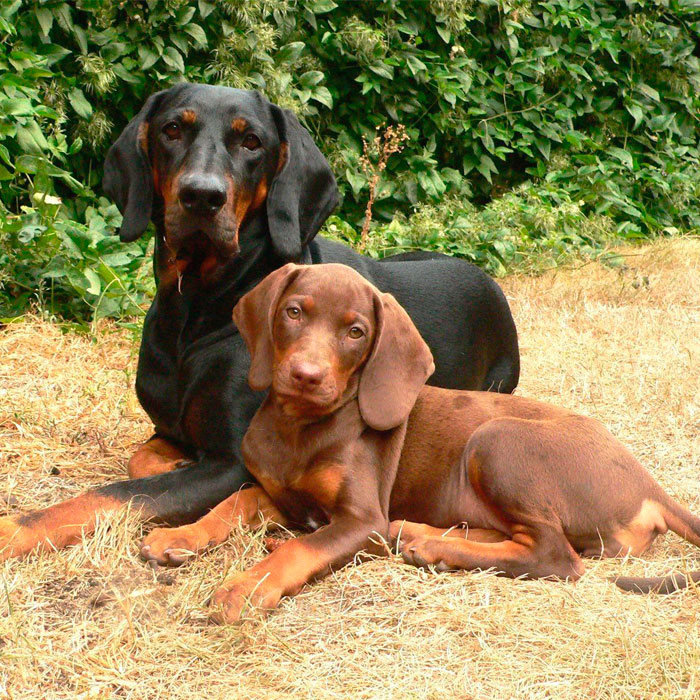 Короткая и жесткая. Плотно прилегает к телу. Имеется густой подшерсток. Окрас может быть чёрно-подпалым, коричнево-подпалым и рыжим.