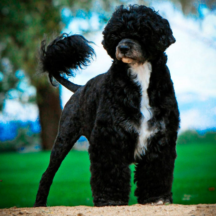 Португальская водяная собака или кан-диагуа, известный как португальский вассерхунд – охотничья порода. Веками обитала вдоль всего побережья Португалии. Выведены в Средние века. Использовались для загона рыб в сети, возвращения потерянных снастей и передачи посланий между кораблями. Сегодня их чаще можно встретить в роли компаньонов и служебных псов.
