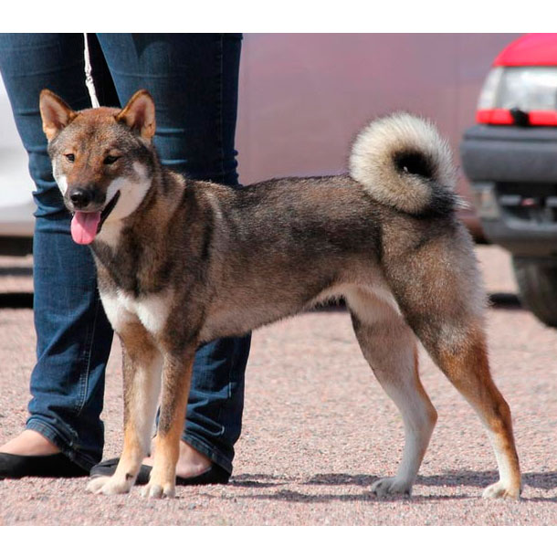 Название породы совпадает с наименованием самого малого из основных японских островов. Неутомимая собака среднего размера произошла, как принято считать, от японских аборигенных волков и псов, живших на одноименном острове. Другие названия этих живчиков: шикоку, сикоку-кэн, коти-кэн, коти-ину, кочи-кен, микава-ину, сикоку-ину, шикоку-ину, шикоку-игу, тоса-ину. Они плохо ладят с сородичами, а вот с другими животными и людьми вполне хорошо.