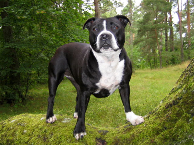 В далеком прошлом в Англии была выведена бойцовская порода - стаффордширский бультерьер. Это отличный охранник, беззаветно любящий своих хозяев. С первого взгляда и знакомства боец своим экстерьером вызывает некоторую оторопь, восхищение и уважение человека. Стаффбуль - настоящий страж и преданный друг. Готов защищать семью и территорию до последнего вздоха.