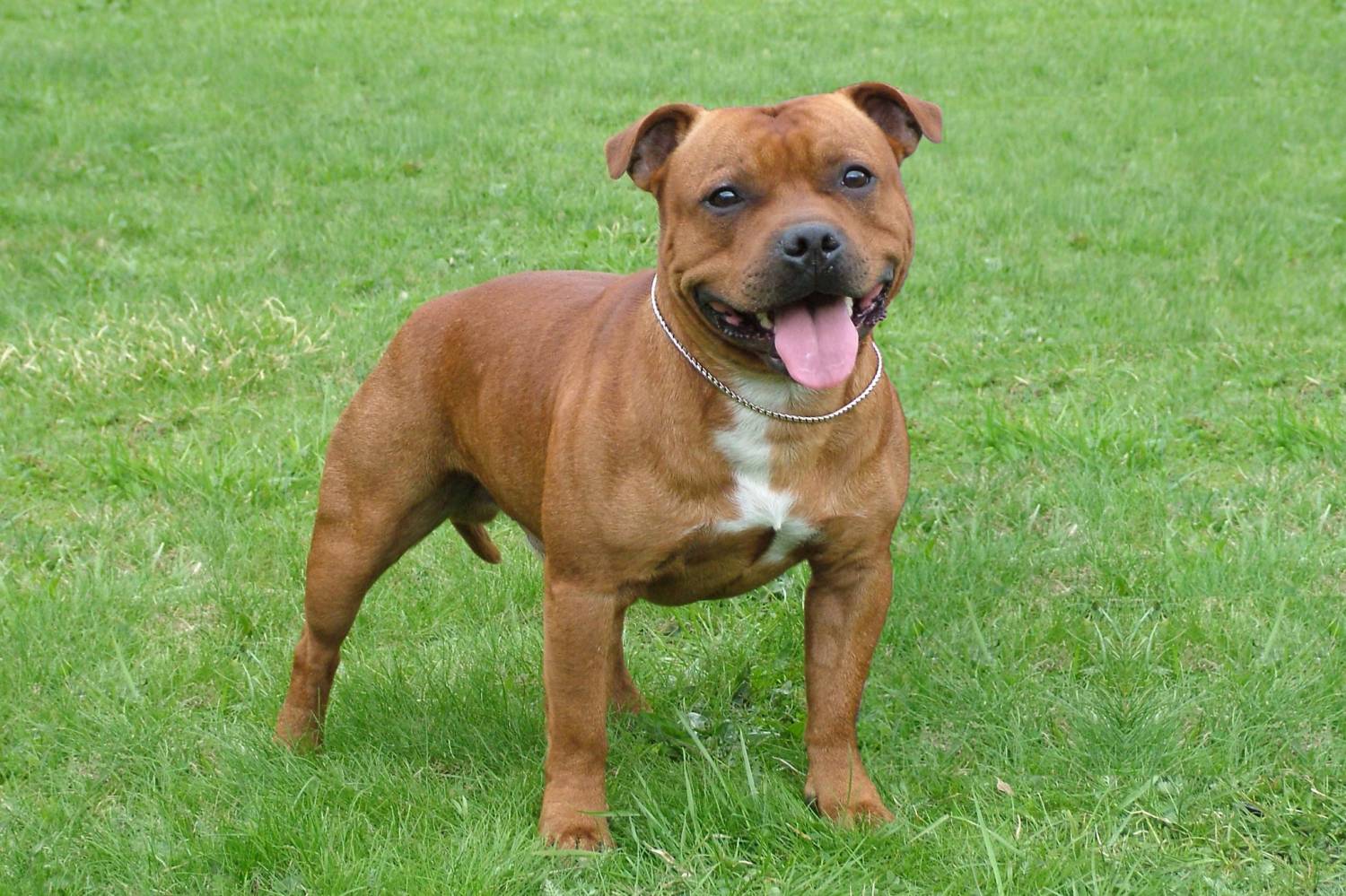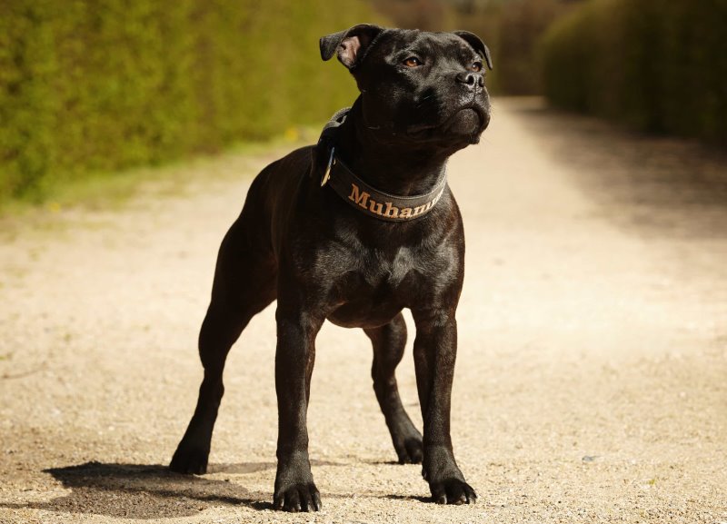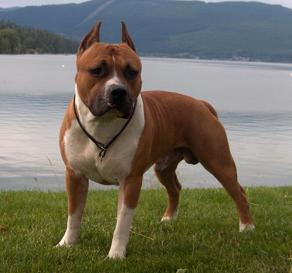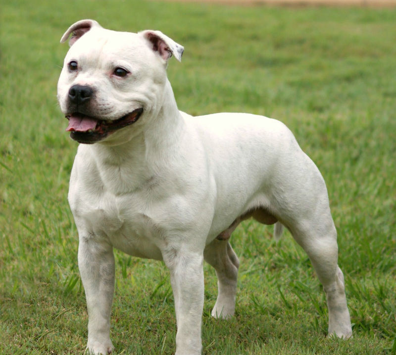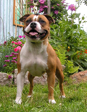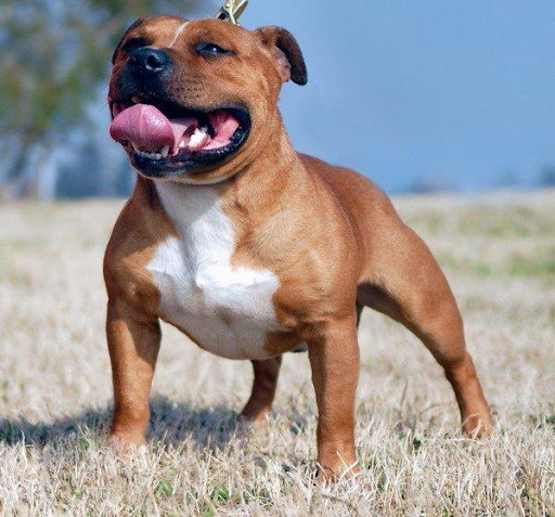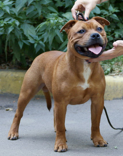 Свое имя силач получил от названия графства Стаффордшир и в память о своих славных предках. Две английские породы подарили стаффбулю самые лучшие качества - ум, отвагу, скорость, неутомимость.