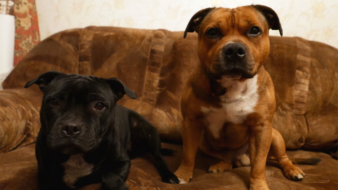 Не забывайте, что социализация щенка - необходимое условие для мирного проживания англичанина среди людей. Он должен спокойно реагировать на своих и чужих. Малыш-стаф очень любознателен, он обязательно познакомится со всеми жителями квартиры. Строго пресекайте агрессивное поведение подопечного по отношению к соседям и животным, особенно к псовым одного пола с вашим юниором.